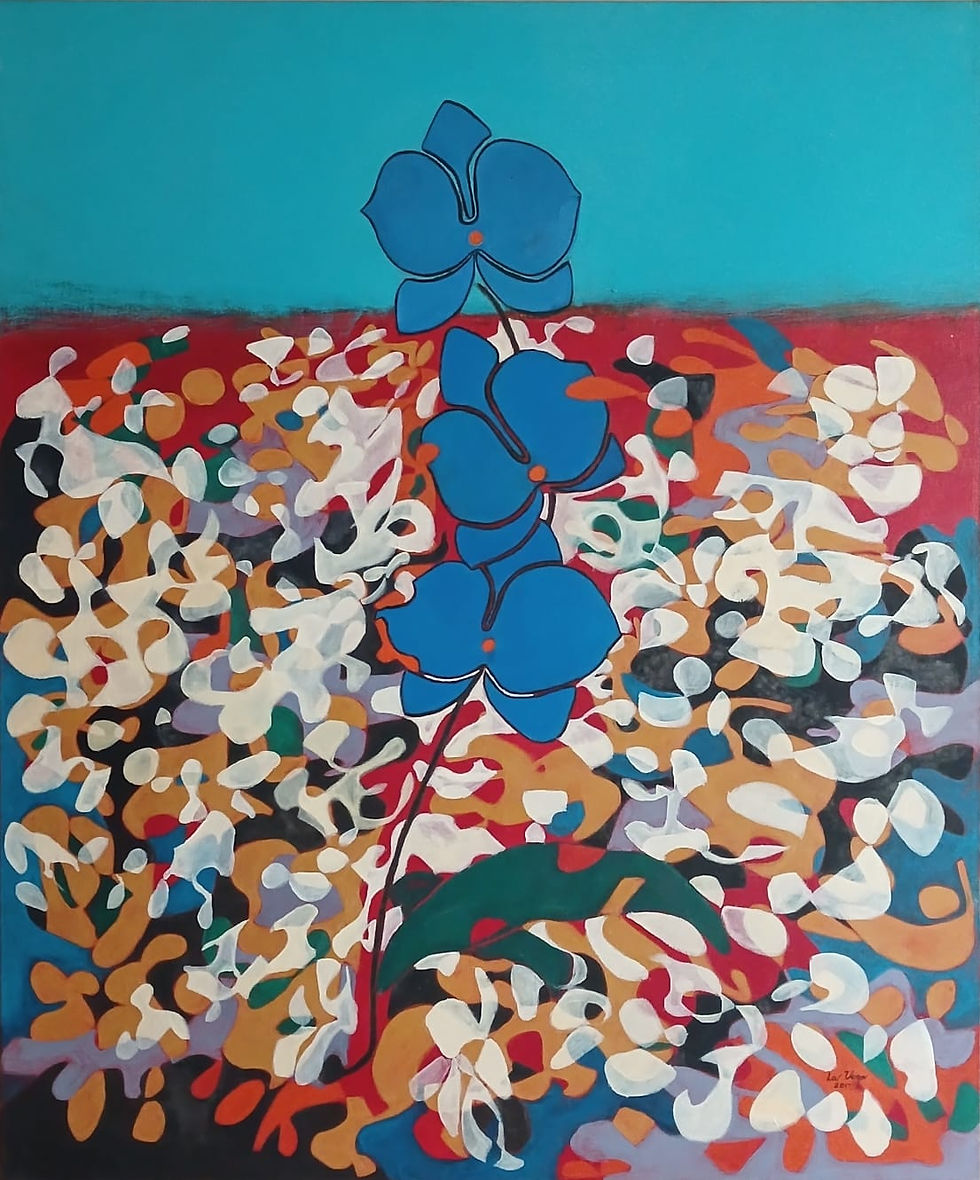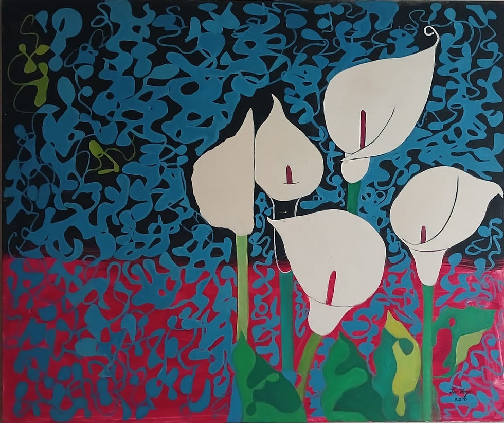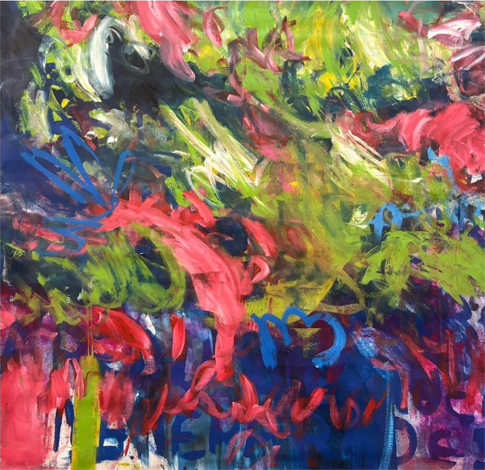INTERSECCIONES consiste en el punto de encuentro de tres propuestas que toman de la gráfica algunos de sus elementos esenciales para potenciarlos pictóricamente sobre lienzo. Alan Urribarrí, quien además es diseñador gráfico, bosqueja tradicionalmente sus paisajes abstractos, visualiza sus colores y degradaciones con recursos informáticos, y finalmente reinterpreta toda la obra con pigmentos sobre lienzo. Armando Guillén se inspira en la fuerza del trazo caligráfico para construir un lenguaje pictórico personal en el cual la dirección de la línea, el contraste y el buen uso del espacio en negativo, le permite expresar sus emociones más íntimas. Luis Lasso de la Vega, recurre a la amplificación de elementos figurativos descontruidos para crear una semi abstracción claramente influida por el graffiti, y narrar su apreciación en cuanto al impacto de las redes sociales en la vida contemporánea. Finalmente, Jairo Romero acerca la abstracción al la conservación de la naturaleza, realizando profundas investigaciones en cuanto a técnicas alternativas y las formas geométricas.